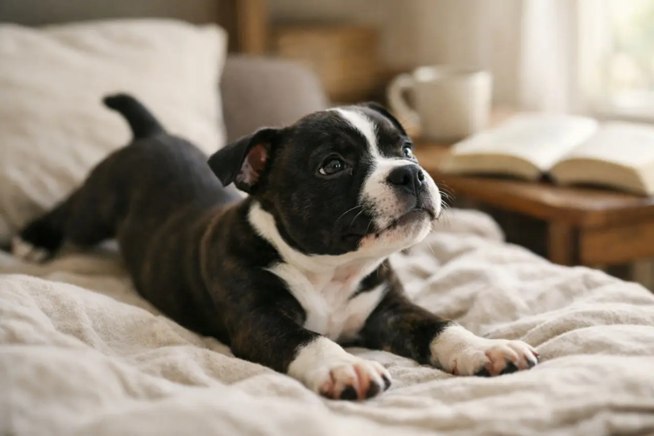 Staffordshire bull terrier dobrze radzi sobie w mieszkaniu, jeśli zapewnisz mu codzienną aktywność fizyczną i kontakt z opiekunem. Rasa średniej wielkości nie potrzebuje ogrodu, lecz potrzebuje ruchu oraz zajęć rozwijających zwinność. Bez odpowiedniego wysiłku pies może się nudzić i wykazywać nadmiar energii.