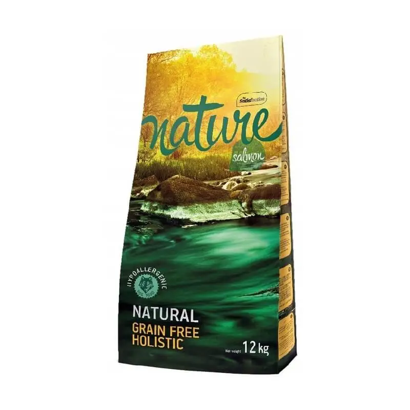 Wśród najlepszych karm z rybą znalazła się ta marki Nature Salmon. Jest to najwyższej jakości, holistyczna i pełnoporcjowa karma dla psów, w której składzie nie znajdziesz zbędnych zbóż, konserwantów, barwników oraz glutenu. Warto dodać, że jest to karma dla dorosłych psów z łososiem. Posiada tylko jeden gatunek mięsa. Co więcej, ta wyjątkowa karma dla psów składa się z 40% świeżego łososia, 20% dehydratyzowanego łososia, jak również z hydrolizatu z łososia. Podkreślmy, że takie zestawienie dostarcza wysokiej jakości protein do organizmu psa. Co więcej, skład uzupełniony został o 22% ziemniaków, pulpę buraczaną, jak również marchewkę. Świetnym dodatkiem jest olej z łososia, który dostarcza niezbędnych nienasyconych kwasów tłuszczowych Omega-3, które rewelacyjnie wpływają na sierść. Na dodatek wspierają funkcjonowanie układu nerwowego, mózgu, jak i aparatu ruchu. Podkreślmy, że w karmie z rybą Nature Salmon znajdują się prebiotyki mannano-oligosacharydy (MOS) oraz inulina (FOS). Oba składniki wspierają mikroflorę jelitową u psa. Na dodatek skład uzupełniony został o glukozaminę i siarczan chondroityny. Warto dodać, że te składniki wspierają funkcjonowanie układu kostno-stawowego, dzięki czemu zapobiegają przed dysplazją stawów biodrowych i łokciowych. Kolejnym świetnym dodatkiem jest L-karnityna, która bierze udział w metabolizmie tłuszczów, jak i wspiera funkcjonowanie serca. Stosunek wapnia do fosforu w tej karmie rybnej dla psów wynosi 1,5:1.