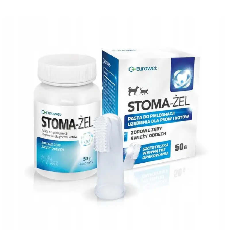 Stoma-Żel to pasta do czyszczenia uzębienia u psów, która sprawdzi się do codziennej pielęgnacji jamy ustnej czworonoga. W swoim składzie ma dodatek chlorheksydyny, która to wykazuje działanie przeciwbakteryjne, usuwa szkodliwą płytkę bakteryjną na powierzchni zębów, jak również odświeża oddech pupila. Warto dodać, że prezentowana pasta do zębów dla psa została uzupełniona o dodatek smakowy, dzięki czemu psy ją bardzo dobrze tolerują. Warto wspomnieć, że pasta posiada dobrze skomponowany skład, który to wspiera usuwanie kamienia nazębnego oraz chroni przed chorobami uzębienia u psów.