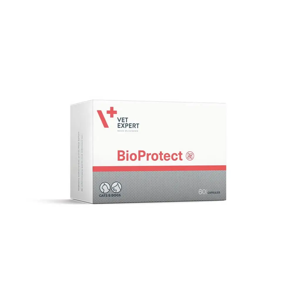 W naszym ranking najlepszych probiotyków dla psów znalazł się VetExpert BioProtect o zawartości 60 kapsułek. Jest to preparat dedykowany zwłaszcza dla zwierząt, które są w trakcie antybiotykoterapii lub występuje u nich niedobór jednego z takich szczepów bakterii jak: Enterococcus faecium, Lactobacillus acidophilus. Na dodatek probiotyk VetExpert BioProtect został uzupełniony o prebiotyki, czyli pożywkę dla bakterii jelitowych, które wspierają ich rozwój i aktywność. Tym samym w recepturze znajdziesz również mannanoligosacharydy oraz fruktooligosacharydy.