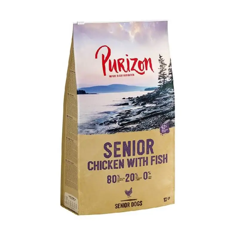 Następną propozycją w rankingu TOP 5 karm dla psów seniorów jest ta marki Purizon. Warto podkreślić, że to pożywienie sprawdzi się dla psów, które nie mają alergii na kurczaka. W składzie produktu znajdziemy świeże mięso z kurczaka w ilości 21%, jak również mięso z kurczaka w suszonej formie w ilości 20%. Poza tym kolejnym źródłem białka jest świeży łosoś w ilości 20%, jak i 7% ryb, takich gatunków jak śledź, gładzica, dorsz, mintaj. Poza tym w składzie znajduje się również 6% mięsa z indyka. Producent w formie wypełniacza zastosował ziemniaki, słodkie ziemniaki, pulpę buraczaną, jak również groszek. Świetnym dodatkiem jest olej z łososia, który to dostarcza potrzebnych kwasów EPA i DHA do organizmu starszego psa. Poza tym karma dla psów seniorów Purizon została uzupełniona o glukozaminę i siarczan chondroityny, które to wspierają funkcjonowanie stawów u pupila. Kolejnym plusem tej karmy jest obecność L-karnityny, jak również tauryny. Oba składniki wspierają funkcjonowanie serca. Na dodatek wspierają utrzymanie prawidłowej sylwetki. Wartość energetyczna w tej karmie dla psów starszych wynosi 3835 kcal/kg. Tymczasem stosunek wapnia do fosforu to 1,5:1.