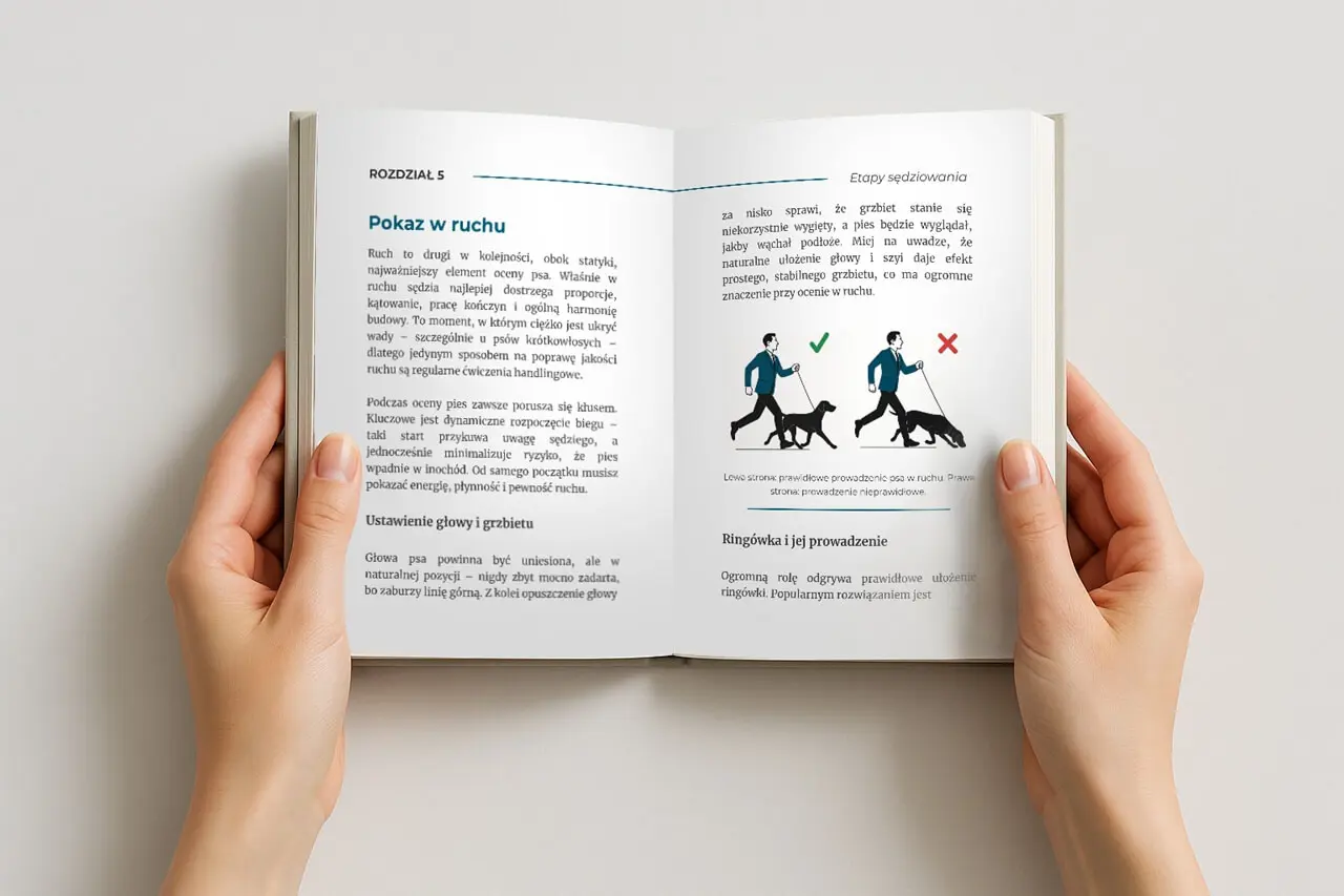 Publikacja została napisana z myślą o początkujących właścicielach, hodowcach i pasjonatach, którzy chcą zrozumieć, na czym naprawdę polega sztuka wystawiania psa. Autorka dzieli się praktycznymi wskazówkami, które potrafią diametralnie zmienić sposób, w jaki sędzia postrzega parę w ringu. Znajdziesz tu wyjaśnienia każdego etapu oceny wraz z dokładnymi wskazówkami, jak zachowywać się, by robić doskonałe wrażenie na sędziach.